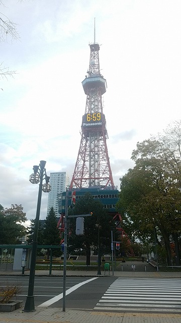 大通り駅に着いたのが7時ちょっと前、テレビ塔ではゲーム内のお土産「ジンギスカン」がゲットできるクエストが出来るので挑戦したんだけど、このお土産同じものは1個しか持てないのね。