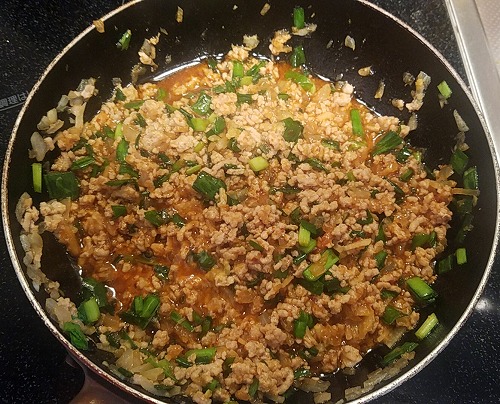 まずは玉ねぎを炒め、次に挽き肉。