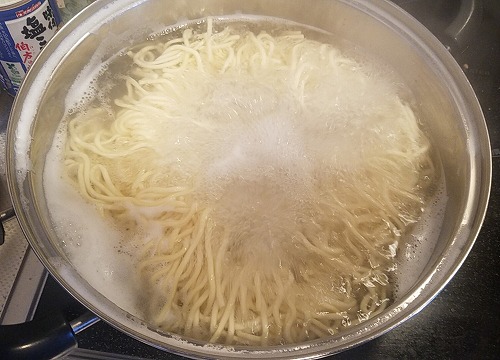 近所のスーパーの生麺コーナーで一番太い中華麺にしてみた。